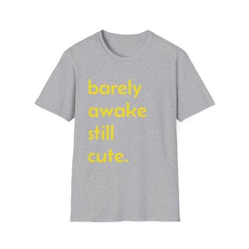 Barely Awake Still Cute T-Shirt | Typography Tee, Yellow Script